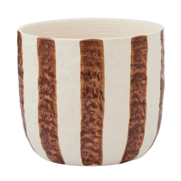Only 4 left!Tan Rayas Ceramic Pot - 19cm x 17cm