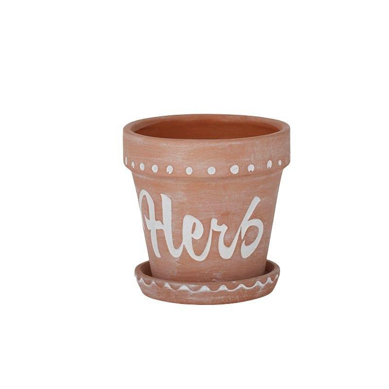 7 in stockHerb Ceramic Pot with Saucer - 12cm x 11cm
