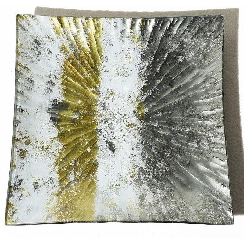 Only 4 left!Silver Fire Glass Plate - 19cm x 19cm