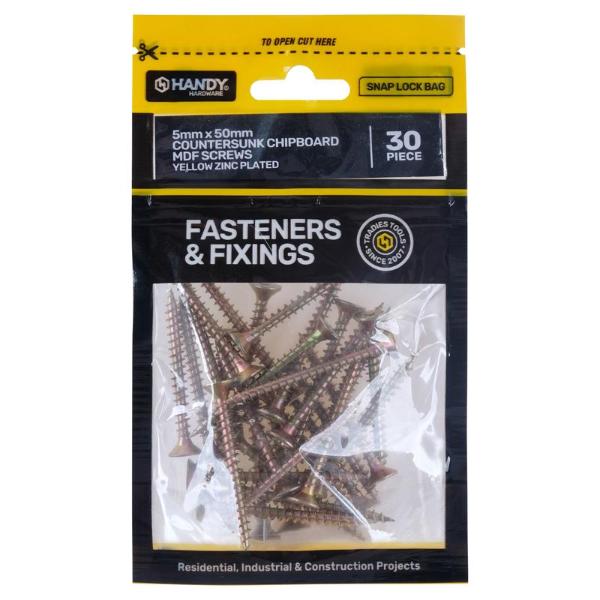 14 in stock30 Pack Yellow Zinc Plated Countersunk Chipboard MDF Screws - 0.5cm x 5cm