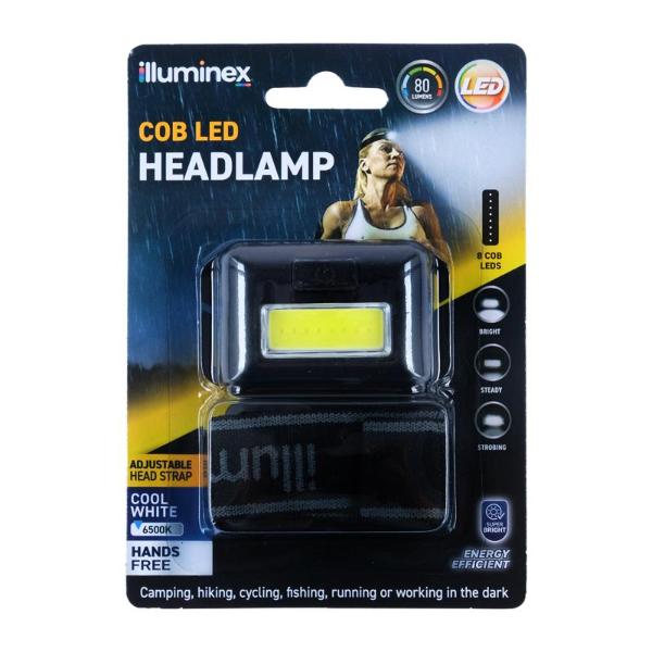25 in stockBlack Iluminex COB LED 80 Lumens Battery Operated 2W Headlamp - 6cm x 4cm x 1.7cm