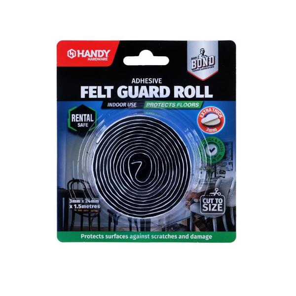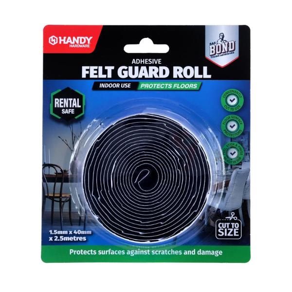22 in stockBlack Felt Guard Roll - 0.15cm x 4cm x 250cm