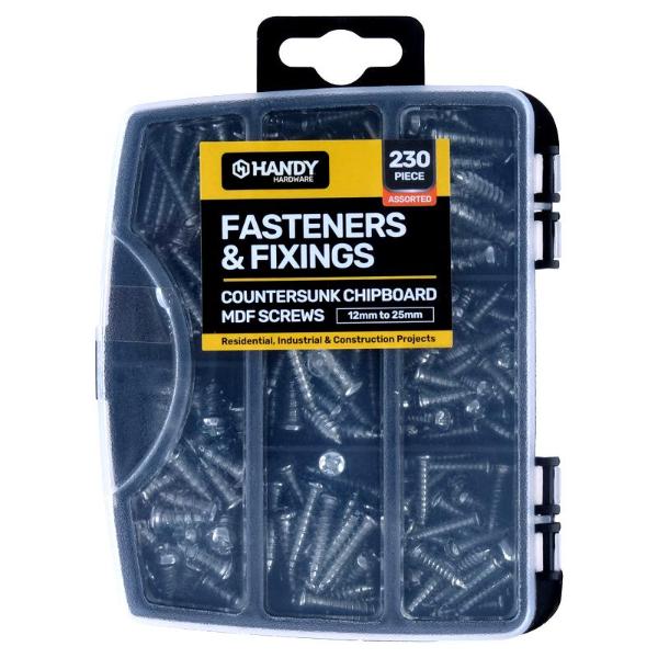 Only 2 left!230 Pack Fasteners & Fixings Countersunk Chipboard MDF Screws In Storage Case
