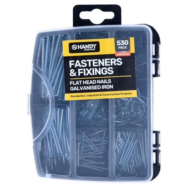 10 in stock530 Pack Fasteners & Fixings Assorted Galvanised Iron Flat Head Nails In Storage Case