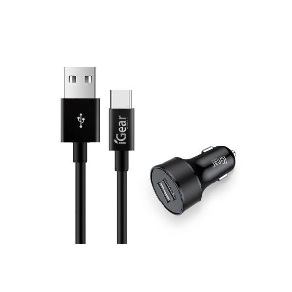 Only 1 left!Black Dual USB With USB To USB C Cable Car Charger