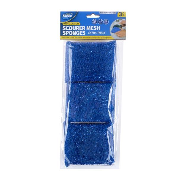 11 in stock3 Pack Blue Mesh Sponge Scourer - 11cm x 8cm x 3cm