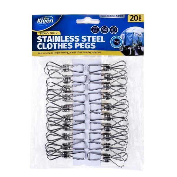 20 Pack Stainless Steel Clothes Pegs - 5.8cm