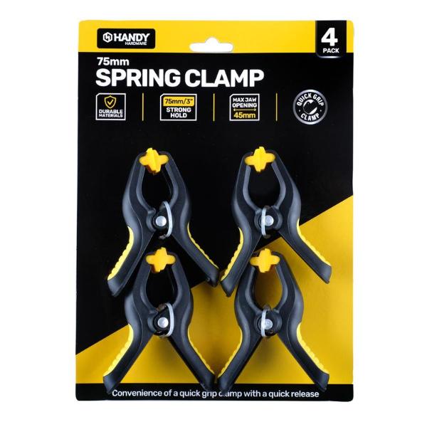 Only 2 left!4 Pack Small Black & Yellow Clamp Spring With Soft Grip Handle - 7.5cm