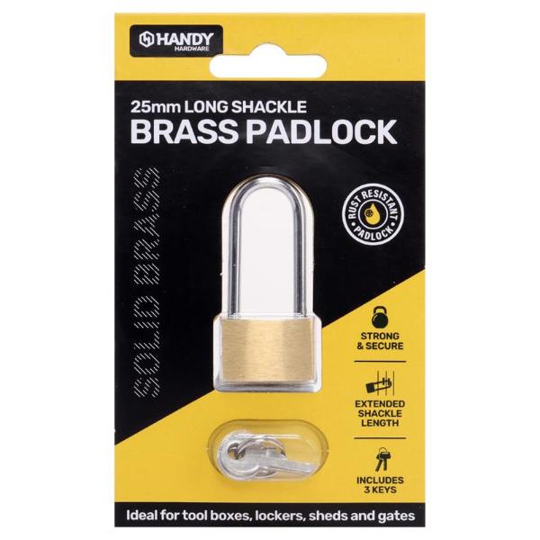 15 in stockSolid Brass Long Shackle Padlock With 3 Keys - 2.5cm