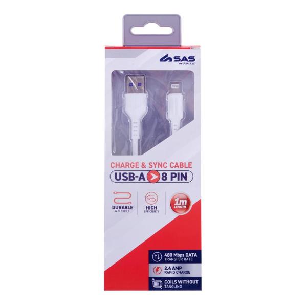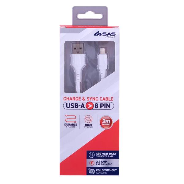 10 in stockWhite Charge & Sync USB A To 8 Pin PVC Cable - 200cm