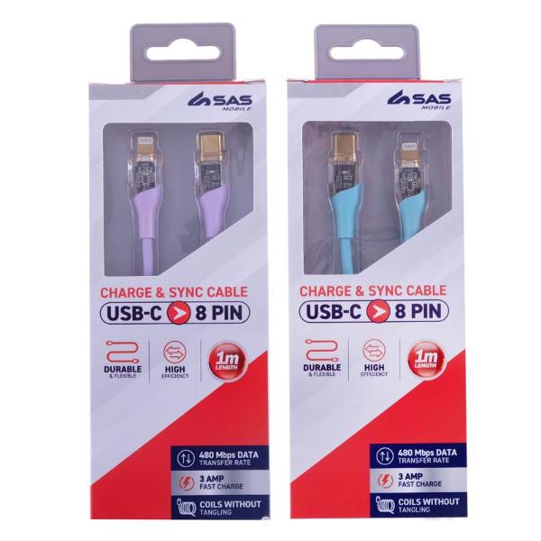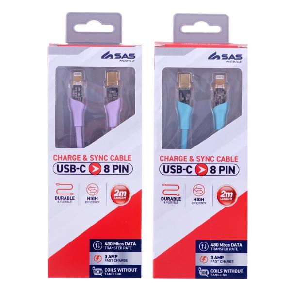 7 in stockAssorted Charge & Sync USB C To 8 Pin PVC Cable - 200cm
