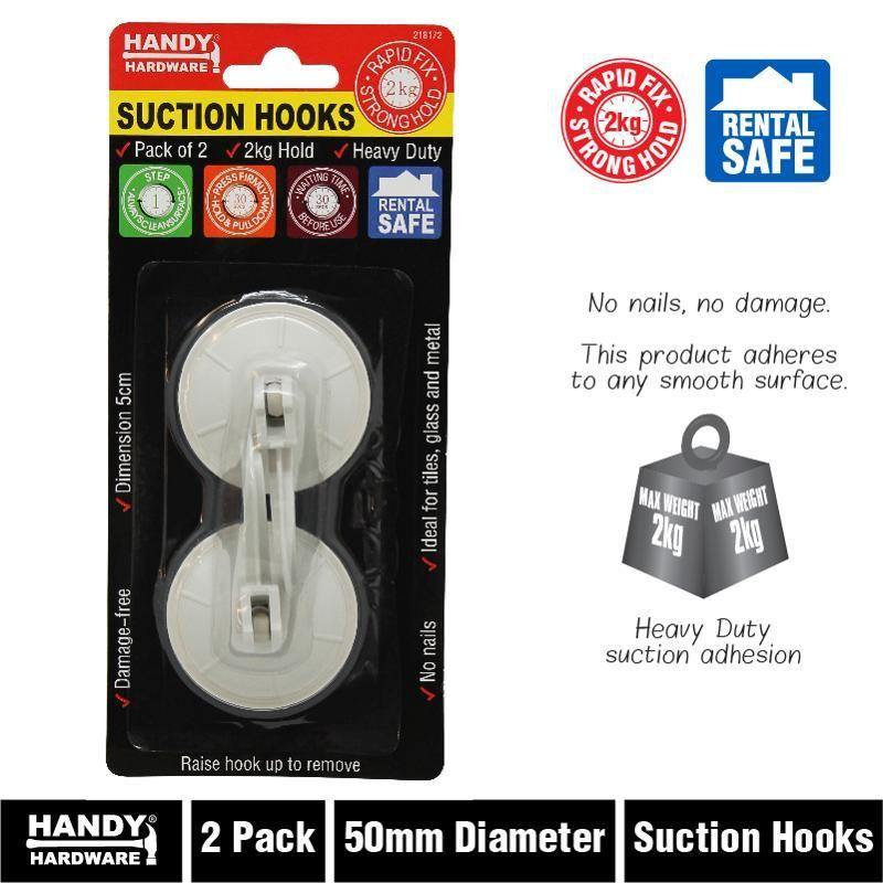 Only 1 left!2 Pack Suction Hooks - 50mm