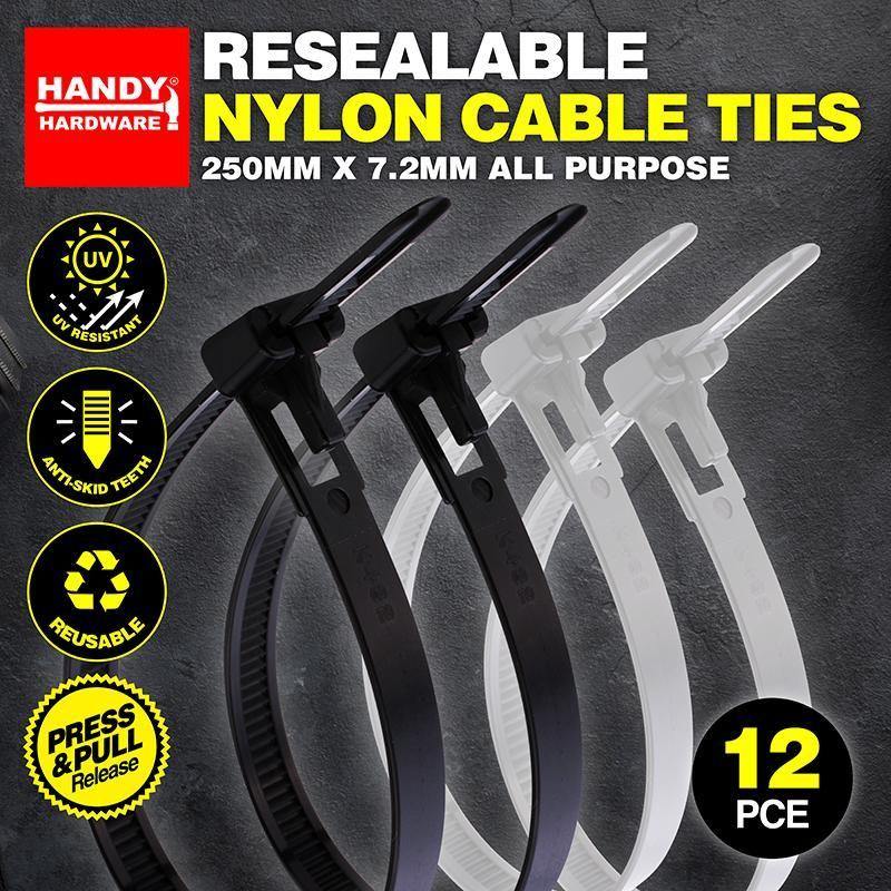 12 Pack Resealable Nylon Cable Ties - 250mm x 2mm