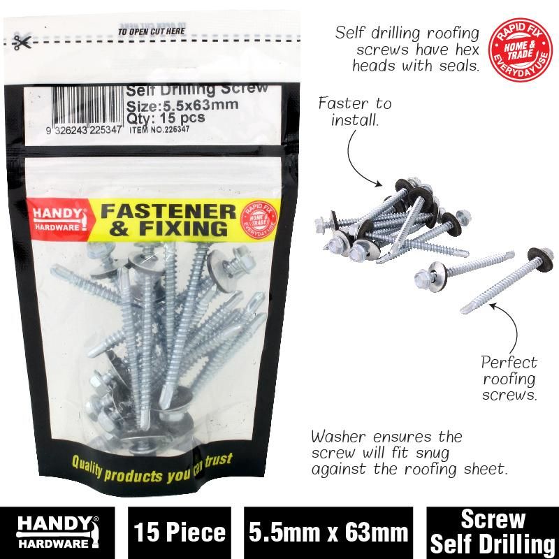 Only 3 left!15 Pack Bag of Self Drilling Screws - 5.5mm x 63mm
