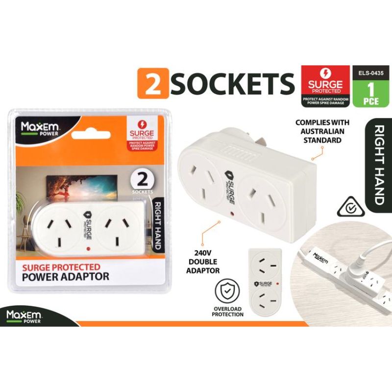 Only 2 left!Maxem Surge Protected Right Hand Side Double Adaptor - 240v
