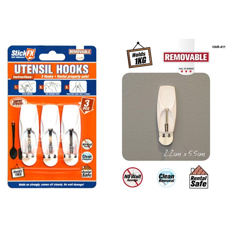 Only 4 left!3 Pack 1kg Self-Adhesive Hooks - 5.5cm