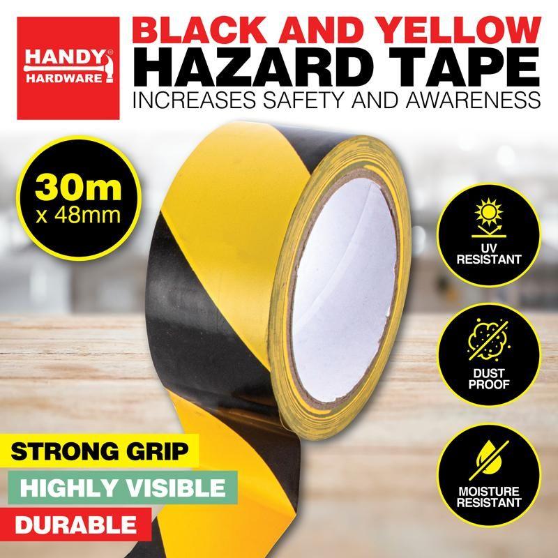 Only 3 left!Black & Yellow Hazard Tape - 48mm x 30m