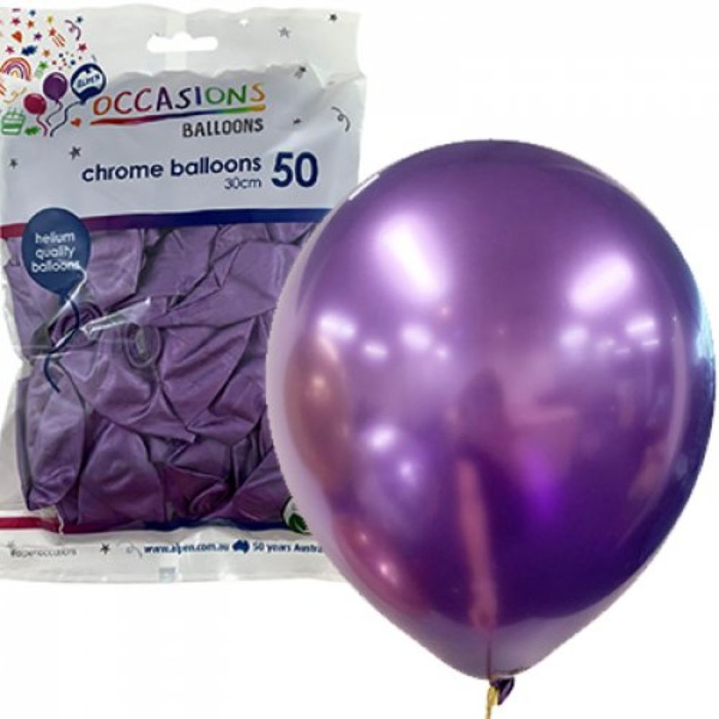 8 in stock50 Pack Chrome Purple Latex Balloons - 30cm