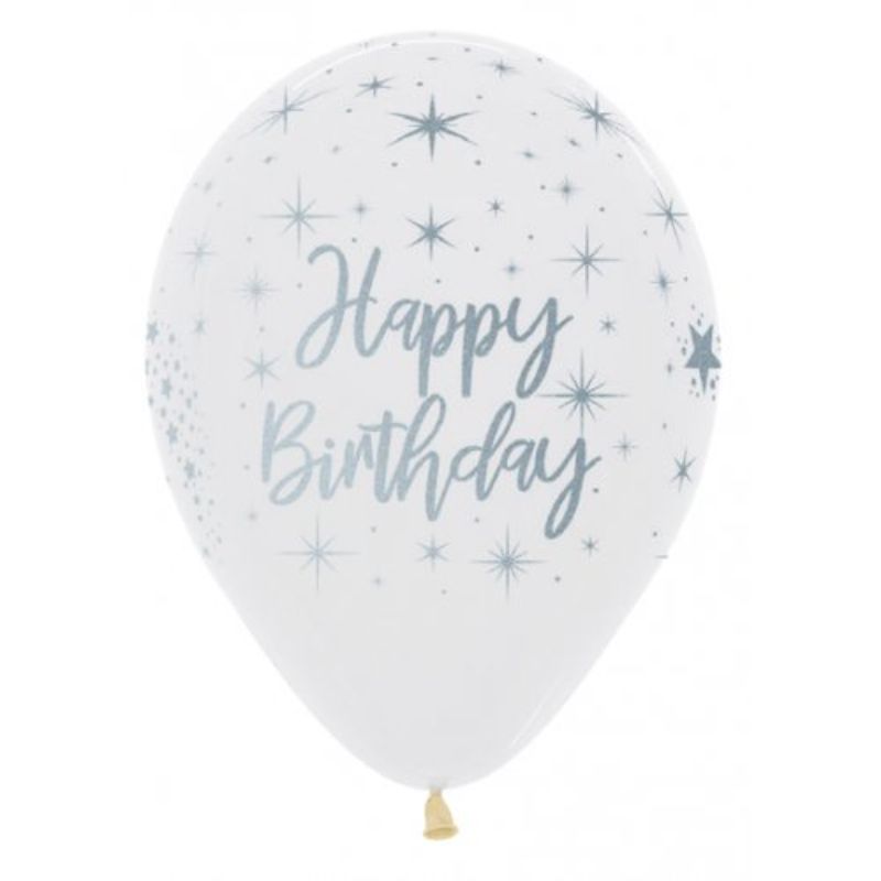 White Fantasy Fashion Happy Birthday Latex Balloon - 30cm