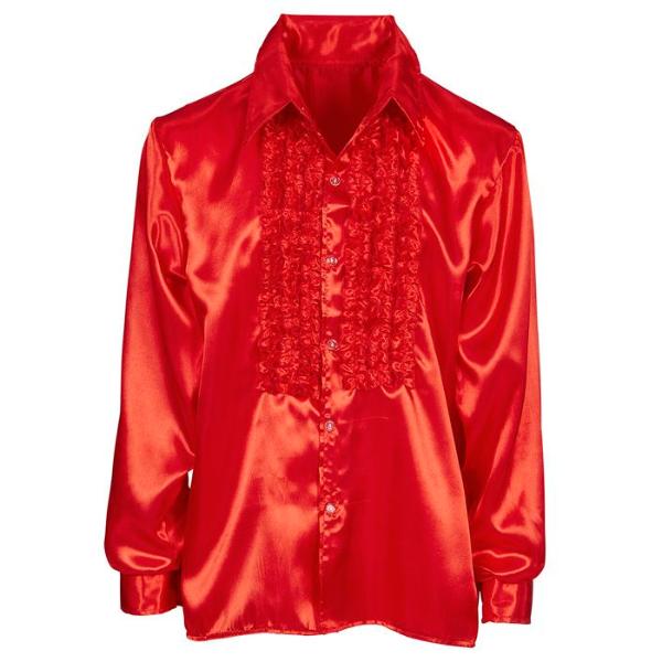 Only 2 left!Red Satin 70s Disco Ruffle Shirt