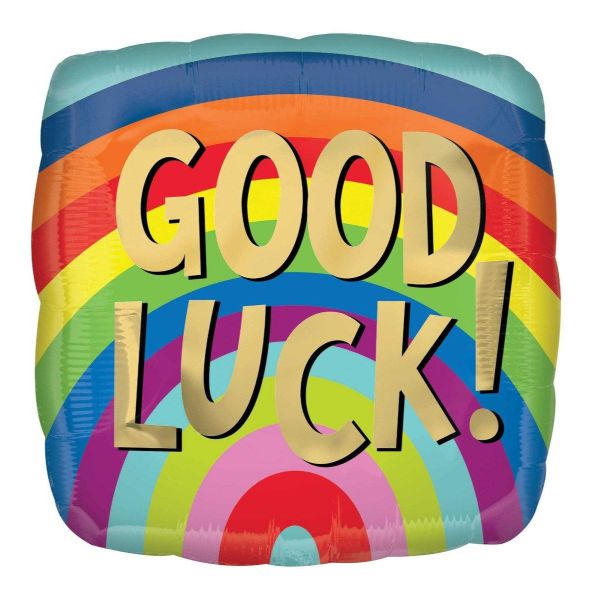 Good Luck Rainbow Stripe Square Foil Balloon - 45cm