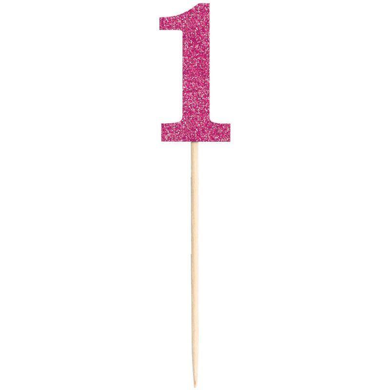 Only 1 left!2 Pack Large Glittered Pink Number 1 Picks - 36cm
