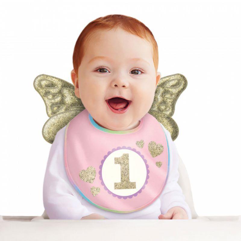 11 in stock1st Birthday Girl Bib with Wings - 22cm x 23.5cm