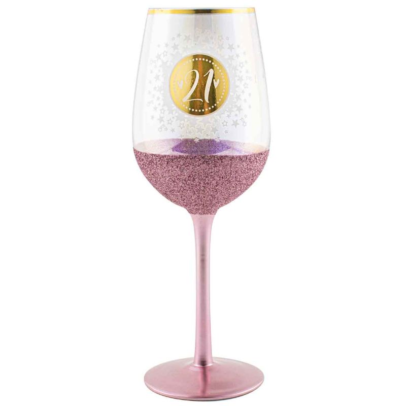 Only 3 left!21 Gold & Pink Glitterati Wine Glass - 430ml