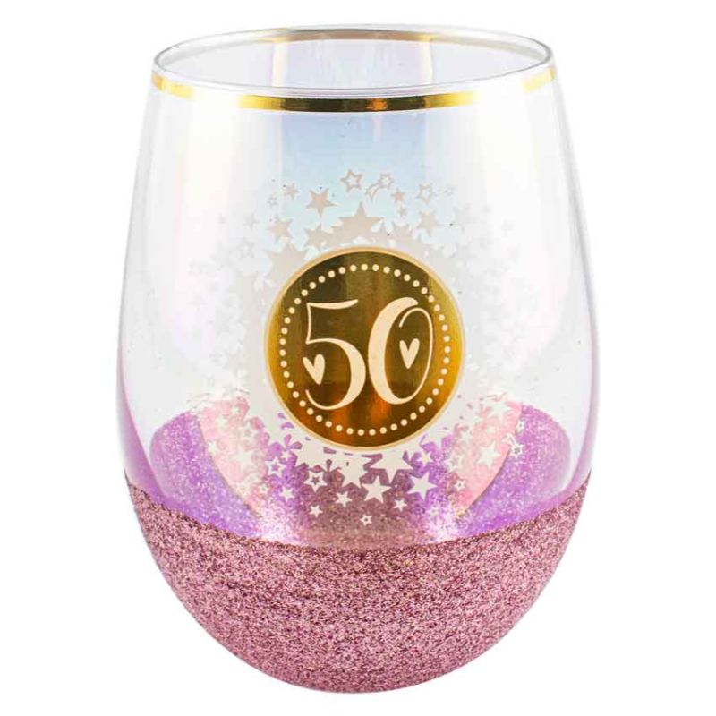 Only 3 left!50 Pink Glitterati Stemless Glass - 600ml