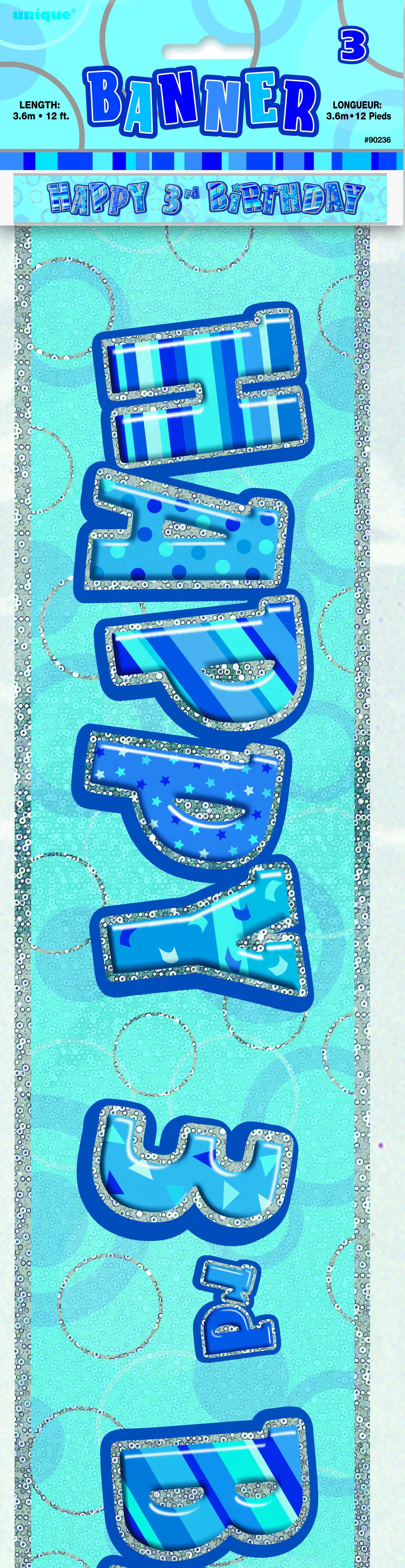 Only 1 left!Glitz Blue Happy 3rd Birthday Foil Banner - 3.6m