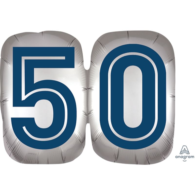 Only 5 left!Blue & Silver 50th Birthday SuperShape Foil Balloon - 63cm x 50cm