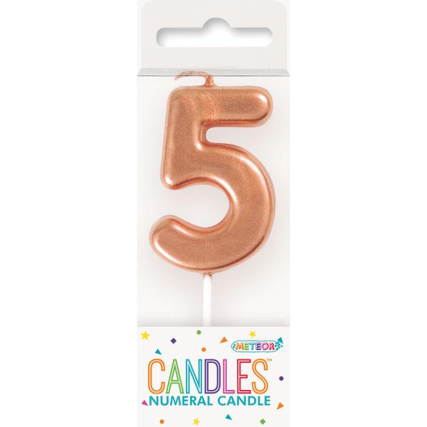 14 in stockMini Rose Gold Numerical 5 Pick Candle