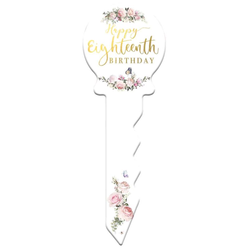 Only 4 left!Pretty Floral Happy 18 Birthday Key