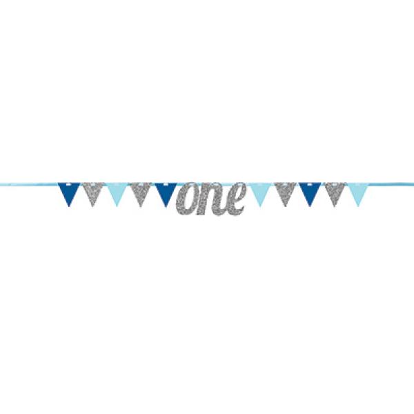 6 in stockSilver & Blue Glittered One Banner Pennant - 20cm x 274cm