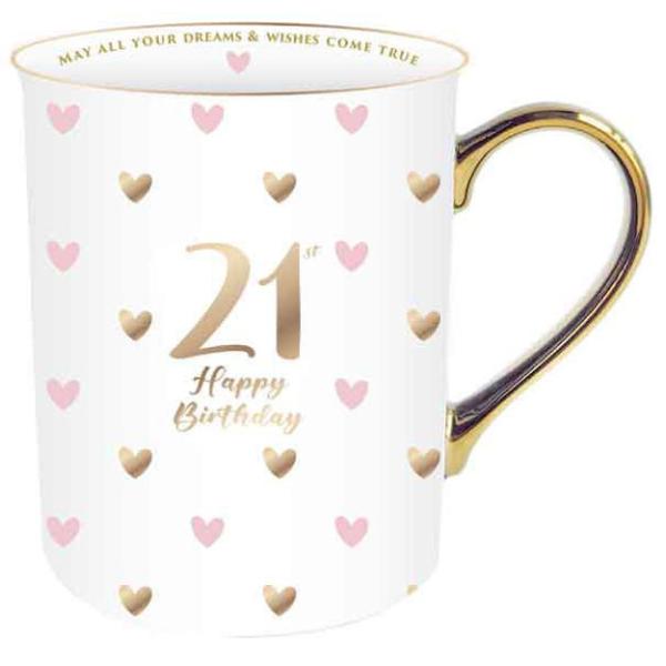 Only 5 left!21st Sweet Heart Mug With Gold Handle - 360ml