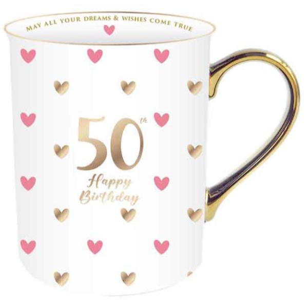Only 3 left!50th Sweet Heart Mug With Gold Handle - 360ml