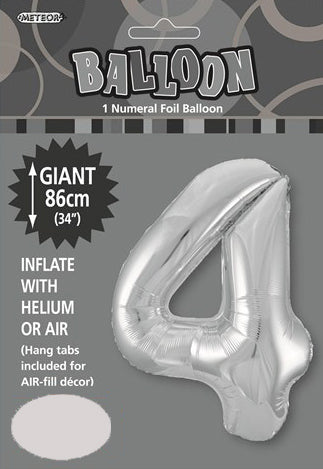 6 in stockSilver Numeral 4 Foil Balloon - 86cm