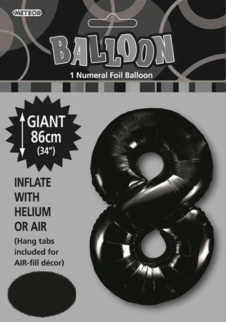 Only 1 left!Black Numeral 8 Foil Balloon - 86cm