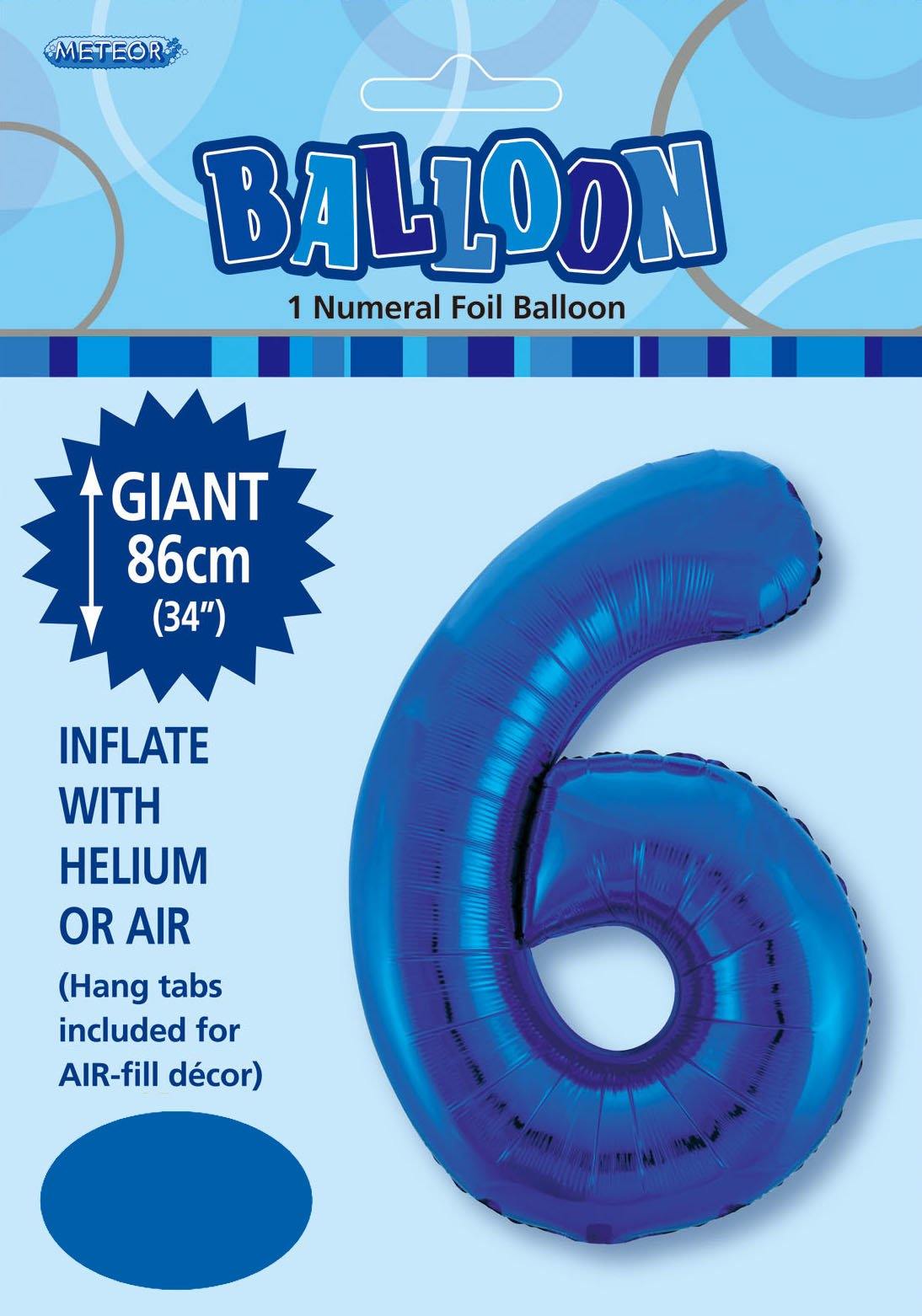 Only 3 left!Royal Blue Numeral 6 Foil Balloon - 86cm