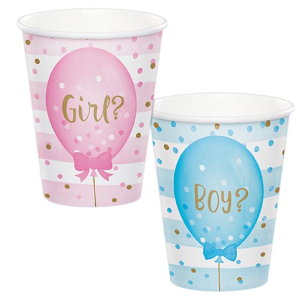 Only 1 left!8 Pack Gender Reveal Balloons Paper Cups - 266ml
