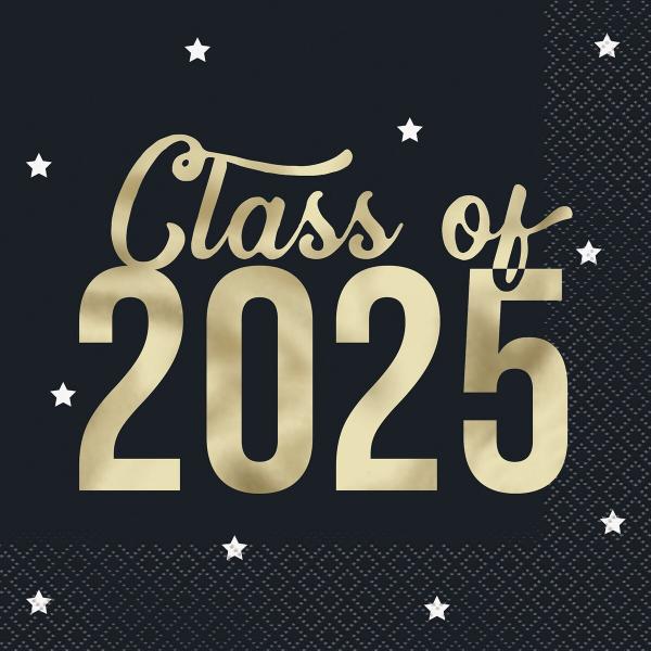 7 in stock16 Pack Black & Gold Class Of 2025 2Ply Foil Stamped Luncheon Napkins - 33cm x 33cm