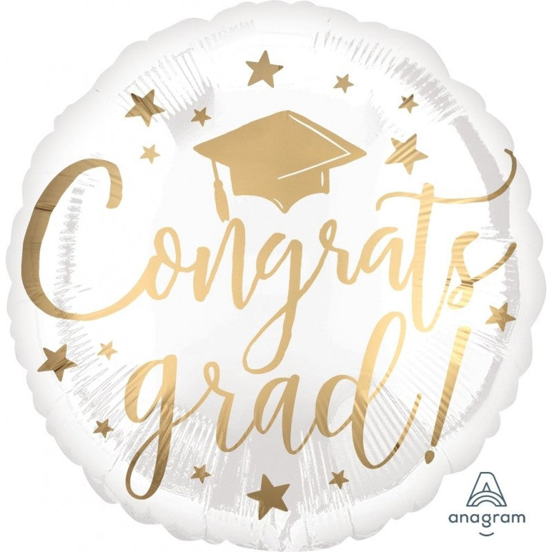 14 in stockCongrats Grad White and Gold Foil Balloon - 45cm