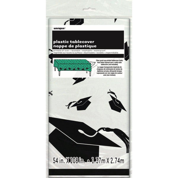 16 in stockBlack Graduation Caps Print Clear Tablecover - 137cm x 274cm