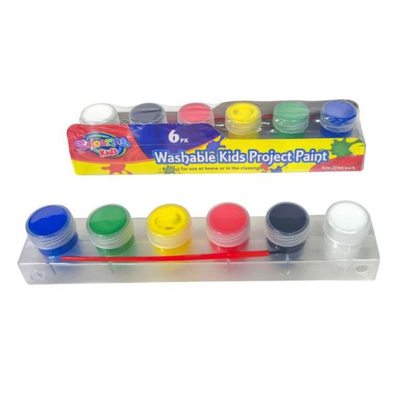 Only 4 left!6 Pack Kids Washable Solid Colours Project Paint - 20ml