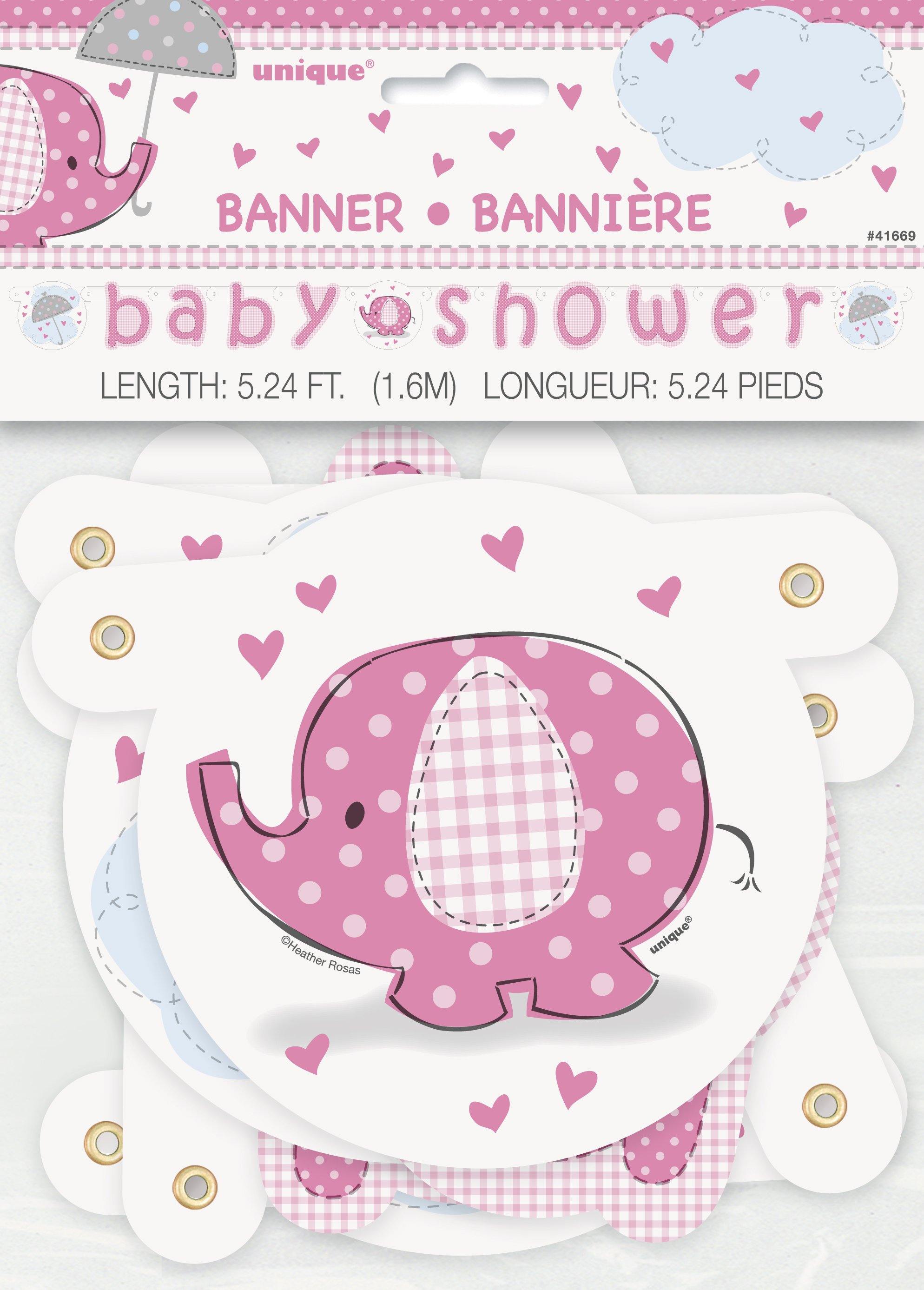 Only 2 left!Pink Umbrellaphants Baby Shower Jointed Banner - 1.6m