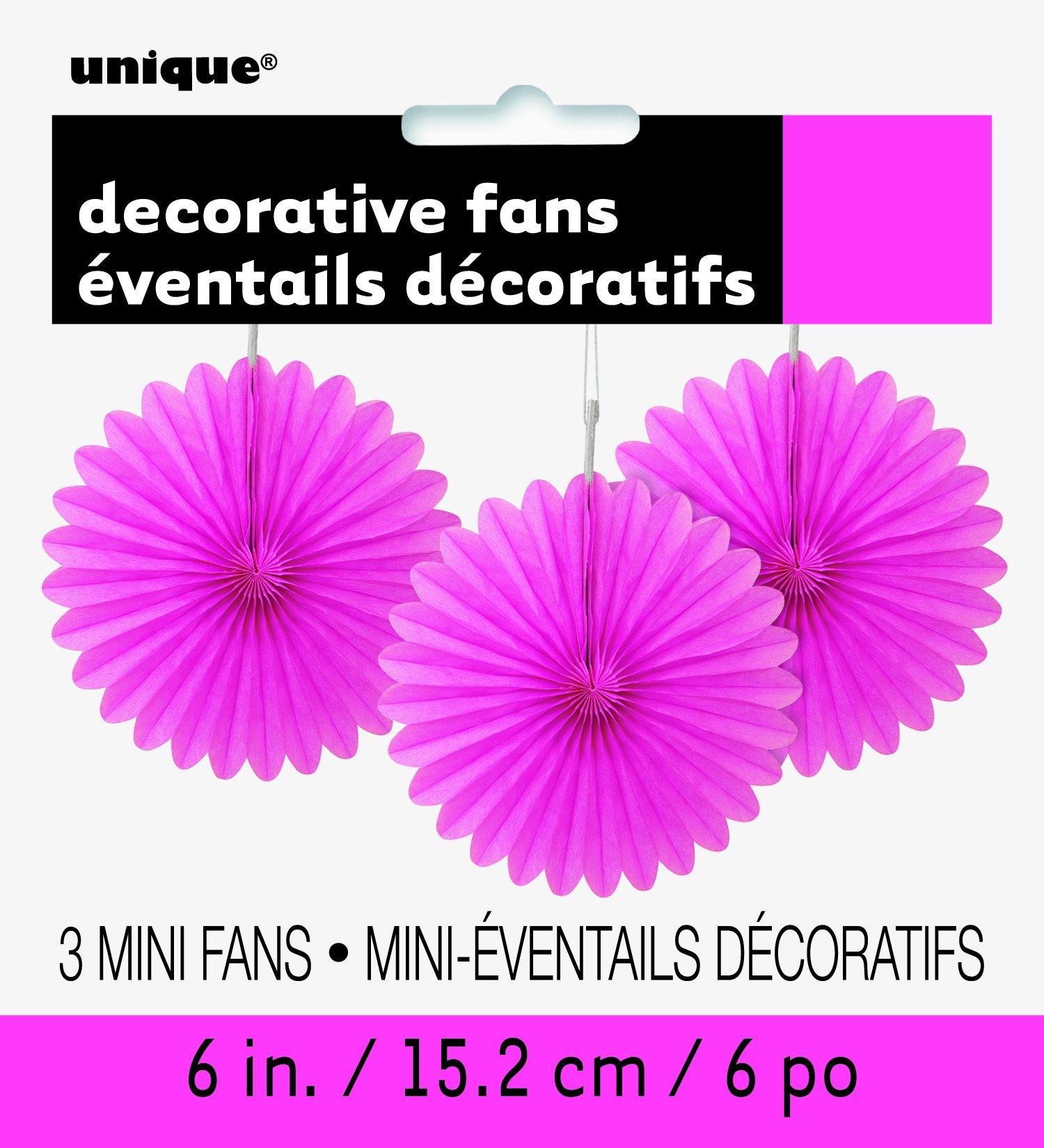 Only 2 left!3 Pack Hot Pink Decorative Fans - 15cm