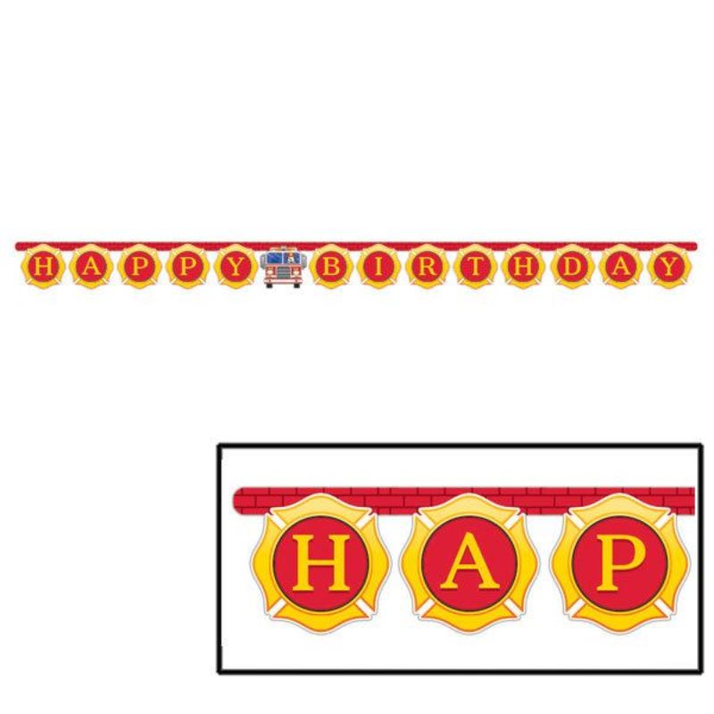 Only 5 left!Flaming Fire Truck Happy Birthday Banner - 2.7m