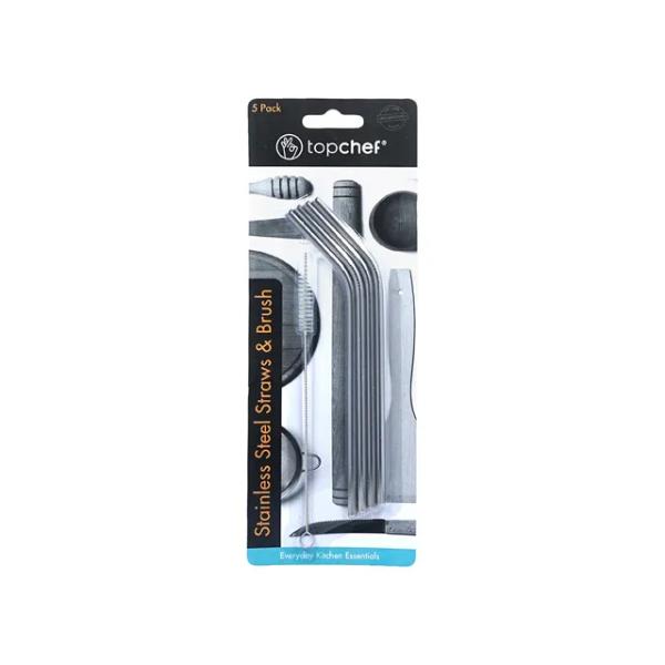5 Pack Stainless Steel Straight Cocktail Straw Set