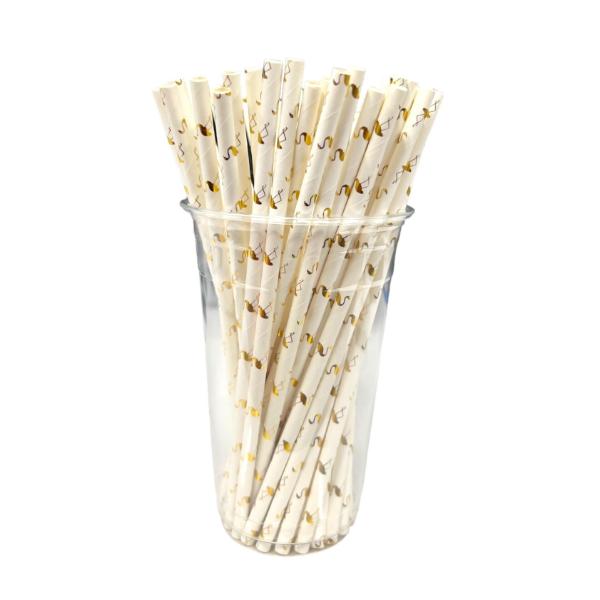 Only 1 left!25 Pack Gold Striped Foil Paper Straws
