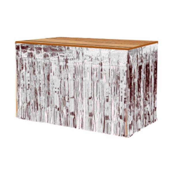 Only 1 left!Metallic Silver Table Skirt - 74cm x 400cm